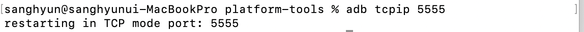4. 네트워크 모드로 변경 adb tcpip 5555