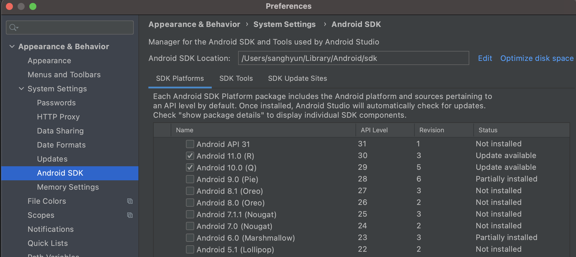 ex) cd /Users/sanghyun/Library/Android/sdk/platform-tools