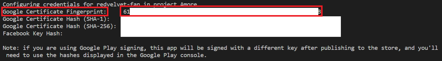 위 화면과 같이 Google Certificate Fingerprint를 복사하여 Firebase 설정에서 추가해준다.